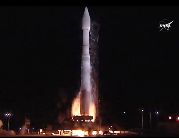 Right on schedule at 1249 UTC on October 8, the Atlas rocket carrying the AMSAT Fox-1A Amateur Radio CubeSat and 12 others lifted off from Vandenberg Air Force Base in California on the National Reconnaissance Office (NRO) NROL-55 mission. Fox-1A carries an Amateur Radio FM transponder. Stations in Europe and Japan have reported copying telemetry from the 1U CubeSat. The first pass over the US will be at about 2350 UTC.