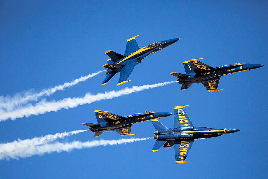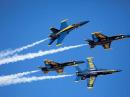Performances by the US Navy Blue Angels and the British Royal Air Force Red Arrows drew large crowds that strained anxious public safety services at the annual event.