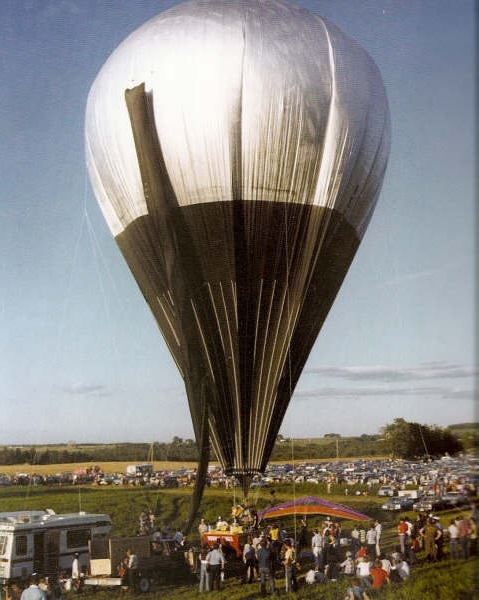 I mentioned to Max that Yost had probably made an error in his choice of balloon volume. Years before, I had worked in the Balloons and Meteorological Systems group at General Mills in Minneapolis. One of the key things we had learned was that flights of several days required compensating for the loss of lift at every sunset. Ballasting was required to keep the system aloft as sunset took place and the helium cooled. For an opaque balloon of coated nylon, about 10% of the gross load was required and to go through several successive sunsets the system would have to consist primarily of expendable material -- ballast. I had estimated from data in the National Geographic article that Yost used a system that could at best have flown about 3 or 4 days, not much duration for a transoceanic flight. "Oh, really?" Max responded. "Can you join Ben and me when we talk with Yost about fabricating a balloon for us?" This began a long relationship.