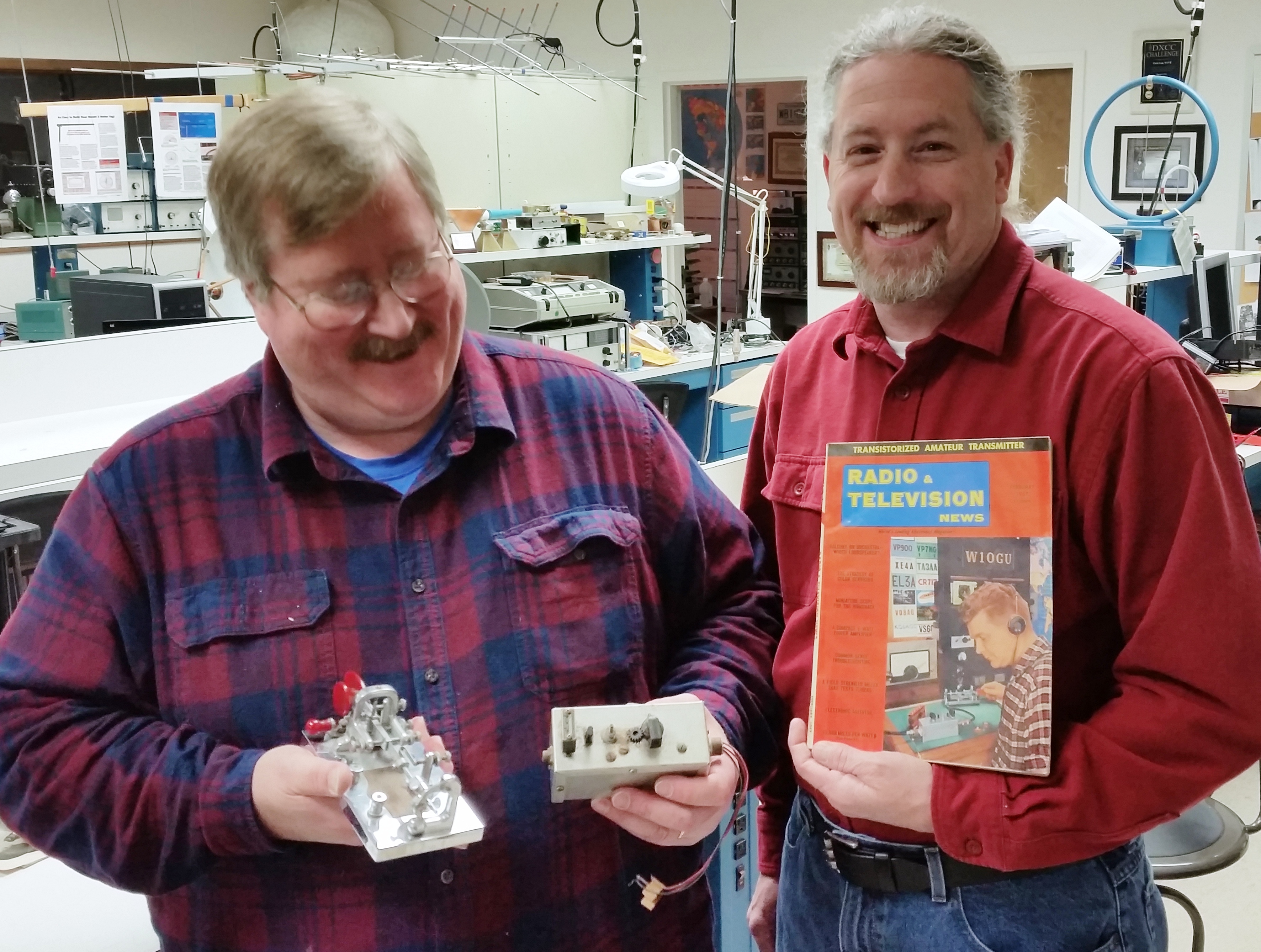 The transmitter will be placed on display in the ARRL Laboratory, along with the bug, station log, and the issue of Radio and Television News with Gus Fallgren on the cover.