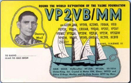 Ultimately, there were three Yasmes. From 1955 until 1962, Weil operated from several ports of call in the Caribbean and the Pacific. This latter-day VP2VB DXpedition will count toward Yasme awards and marks the first activation of VP2VB in more than 60 years.