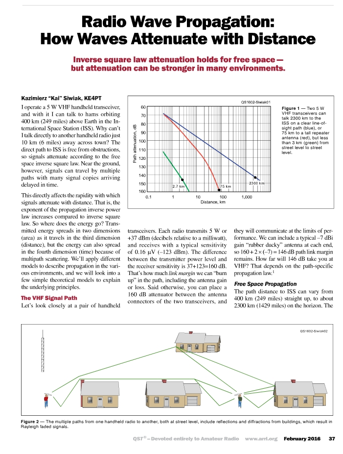 The winner of the February 2016 QST Cover Plaque award is “Radio Wave Propagation: How Waves Attenuate with Distance” by Kazimierz Siwiak, KE4PT.