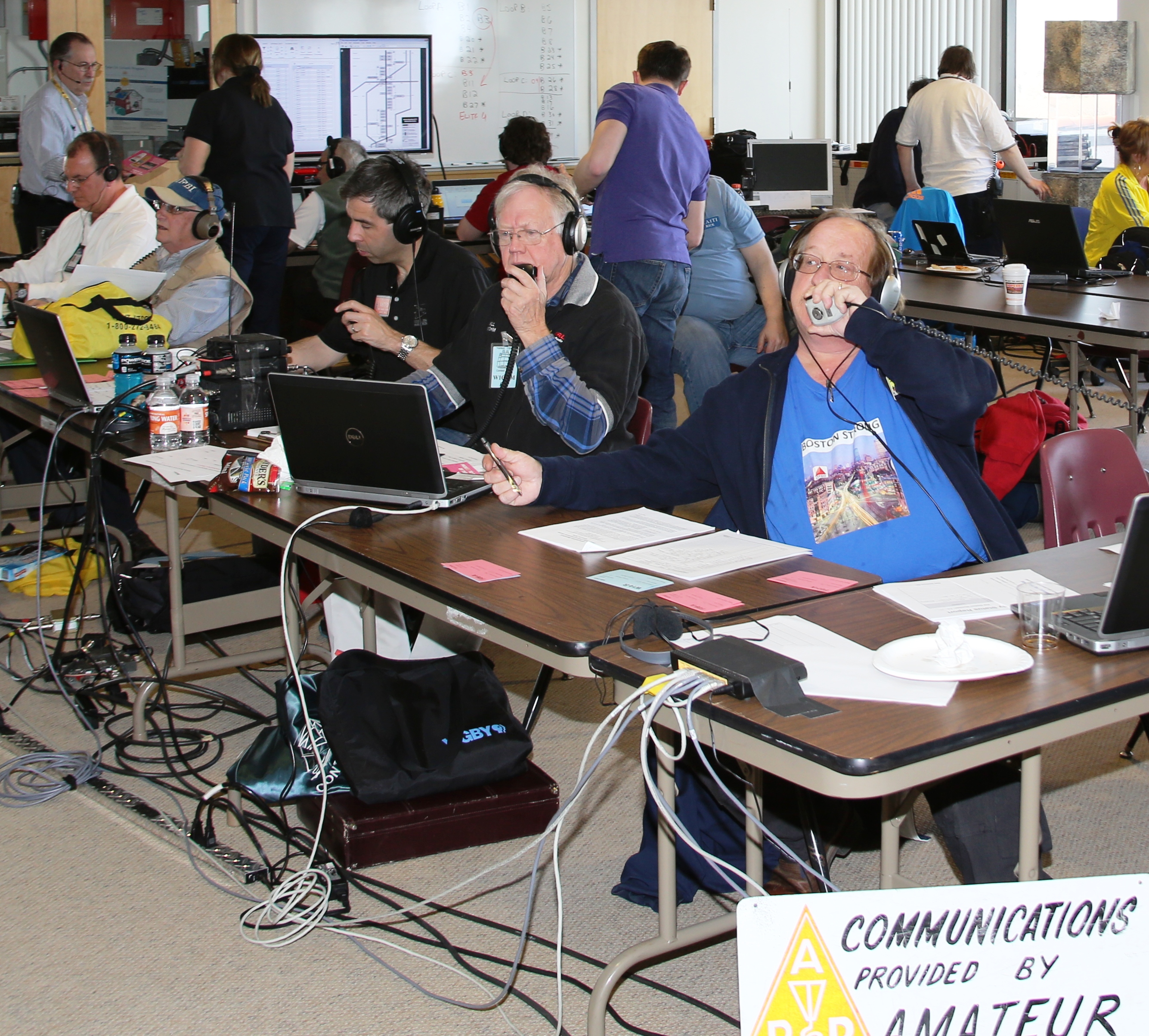 Amateur Radio had a stronger presence this year at the Massachusetts Emergency Management Agency (MEMA) State Emergency Operations Center (SEOC), where a multi-agency coordination center was set up for the race. The SEOC worked closely with the Boston Marathon Amateur Net Control Center, the BAA Operations Center at Boston Public Library, and the Red Cross Disaster Operations Center in Cambridge.