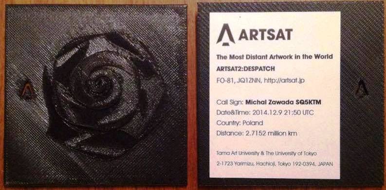 Polish Radio Amateurs Receive 3D-Printed ARTSAT2: DESPATCH QSL Card